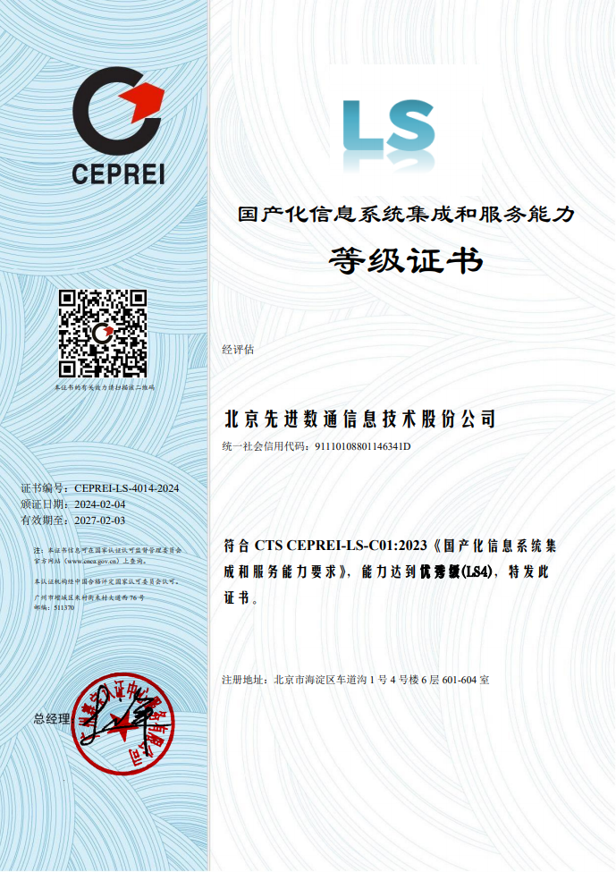 国产化信息系统集成和服务具有关乎国家科技开展和社会信息安全的特殊性,在行业准入方面具有特殊要求。截至现在,国产化信息系统集成和服务能力共划分为四个等级,从低到高依次为LS1级(初始级)、LS2级(基本级)、LS3级(良好级)、LS4级(优秀级)。认证过程经过严格的审核和评估,对企业综合能力、设计研发能力、集成能力、技术支持能力、管理能力等多项指标进行科学有效的考核评价。本次认证的顺利获得,不仅体现了业界对威九国际V9研发能力、创新能力、企业管理能力等多方面认可,更彰显了企业的综合实力及核心竞争力已得到进一步提升。