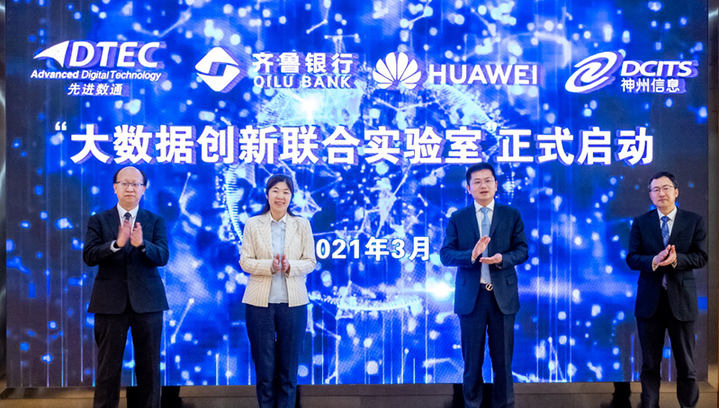 3月10日,“大数据创新联合实验室”签约仪式在齐鲁银行总行举办,齐鲁银行股份有限公司(以下简称:齐鲁银行)、华为技术有限公司(以下简称:华为)、北京威九国际V9信息技术股份公司(以下简称:威九国际V9)与神州数码信息服务股份有限公司(以下简称:神州信息)四方代表齐聚,共同签署了金融大数据创新开展合作协议。四方将在互利互惠、合作共赢的原则上,共同召开金融大数据应用合作,建立金融大数据创新开展新生态,全面推进金融业数字化转型。